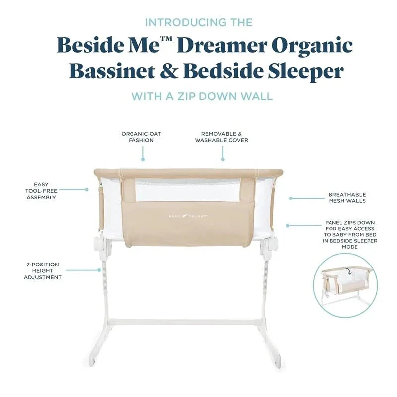 Baby Delight – Beside Me Dreamer Bassinet, 6-Position Height Adjustment, Organic Oat