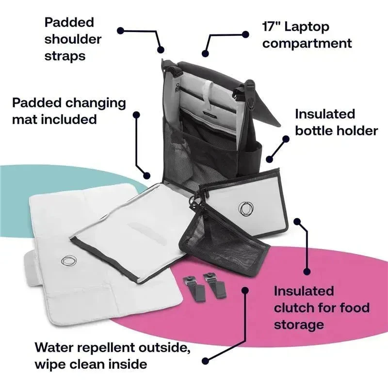 The Bugaboo Changing Backpack is stylish and spacious, so you can stroll with confidence and bring whatever your baby might need on the go. It has comfortable and adjustable shoulder straps for hands-free carrying, which tuck away neatly when attached to the stroller. The two included clutches keep your essentials organized, allowing you to quickly find what you need when you need it.