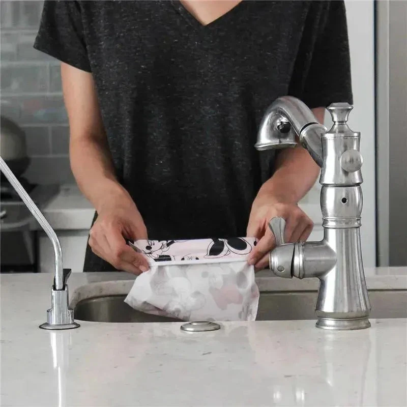 The Bumkins Classic Minnie Mouse Reusable Snack Bag it’s an eco-friendly alternative to single-use plastic baggies, snack bags are made from the same easy-wipe waterproof fabric as Bumkins award-winning SuperBibs. A smooth zipper closure doesn’t hold crumbs and single ply construction means no worrying about icky stuff growing between layers of fabric. Great for food or fun, snack bags help organize lunches, toys, electronics and more! Also available in a smaller size, 2 pack option. Machine washable and dishwasher-safe (top rack) for easy cleaning. Large bag measures 7” by 7”, small bags measure 7” across and 3.5” from top to bottom. BPA, PVC, vinyl, phthalate and lead free.
