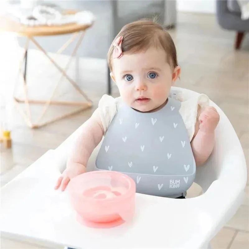 Made with 100-percent food-safe platinum LFGB silicone. Microwave, freezer and dishwasher-safe. Bowl is oven safe up to 400F/204C. For ages 4 mos and up. We use third party labs to ensure the products we manufacture comply with CPSC and CPSIA standards for BPA, Lead, and Phthalates. For over 30 years, Bumkins has been creating thoughtful essentials for babies and kids, making parenting easier so families can cherish special moments. Designed in Arizona, responsibly made in China.
