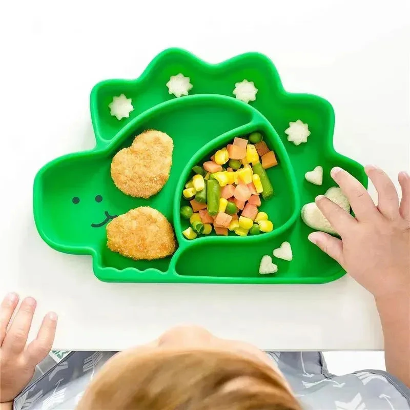 Encourage your child to sel feeding with this adorable divided plate, perfect for right food portions. It features a strong suction base to ensure it will stay put and avoid messes, a natural resistance to bacteria and a straight side that allows kids to belly up the plate when on high chairs.