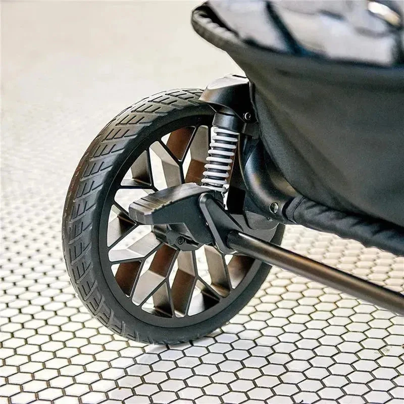 -Bumpy city sidewalks and uneven terrain pose no problem for the Corso LE Stroller thanks to features such as FlexCore® adjustable rear suspension and large wheels foam-filled, treaded rubber tires.