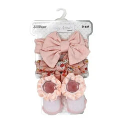Rising Star Baby Girl Booties 4Pk, Mint & Pink Flowers 0-12M