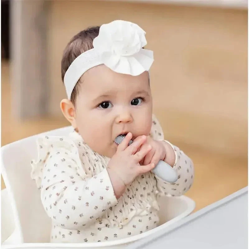 Toothbrush’s silicone bristles gently clean gums + new teeth