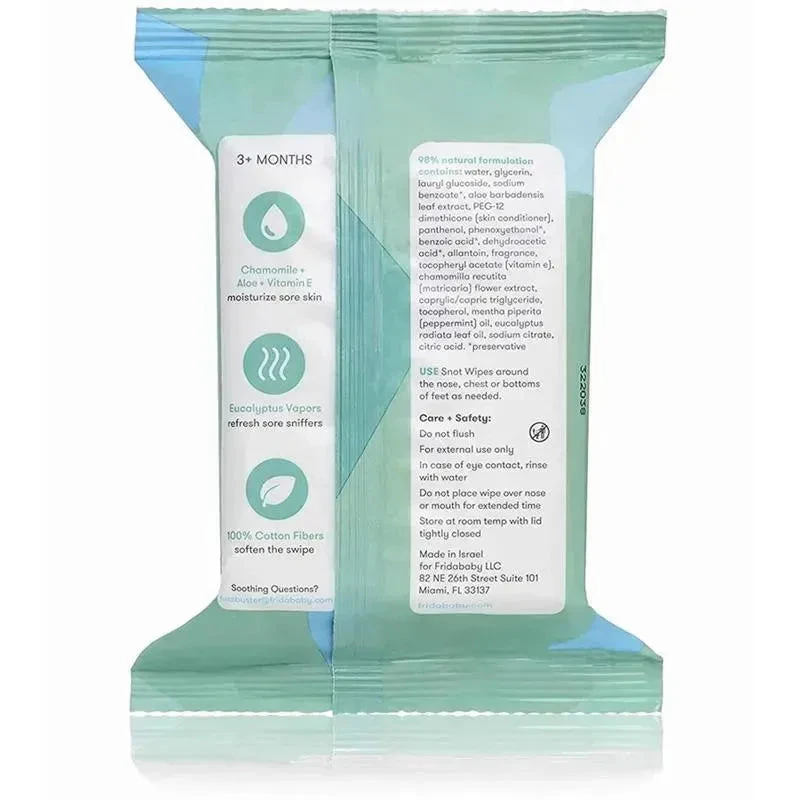 A chest balm meets tissue mashup, BoogerWiper soothes snore sniffers at home and on-the-go with all the benefits of a chest balm in a fuss-free wipe form. Chamomile, aloe + vitamin B provide cooling relief to tender noses, and all-natural menthol + eucalyptus leave baby feeling refreshed from chest to toes.
