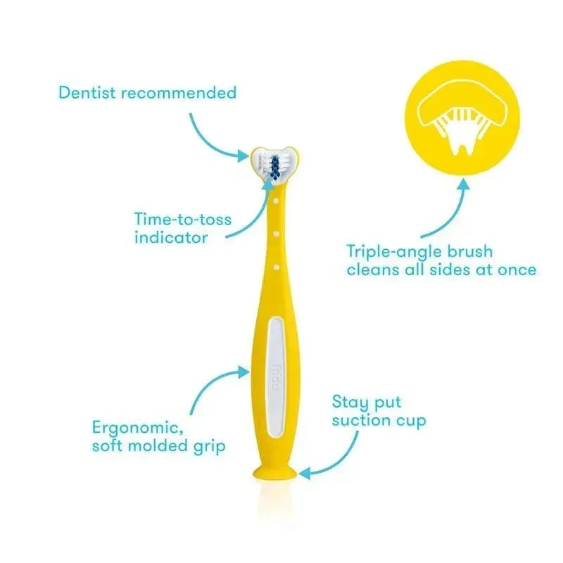 SOFT AND GENTLE: Soft, rounded bristles are gentle on your little one’s teeth and gums.