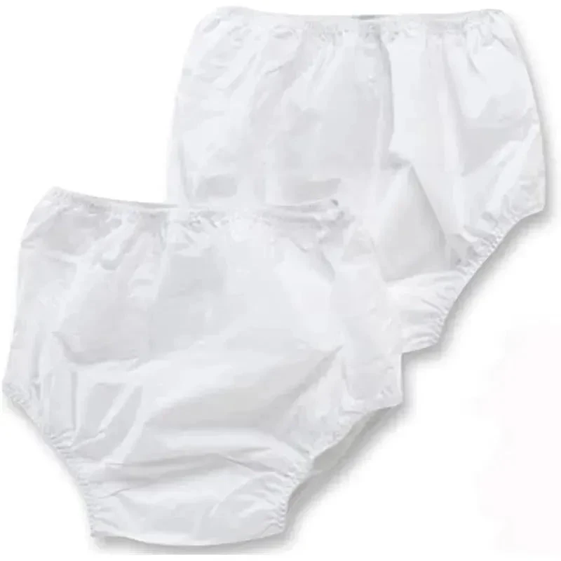 Made of 100% PEVA and nylon covered elastic leg and waistband protect baby’s sensitive skin