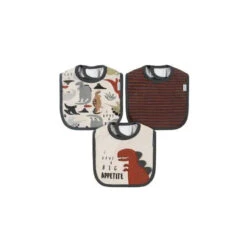 One beige with allover dino print, one gray,orange stripes, one beige with dino art &