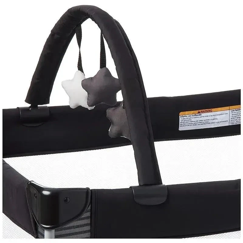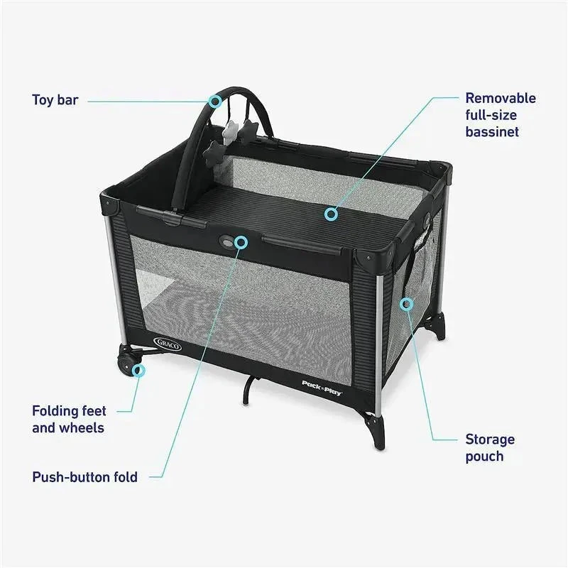 Keep your little one happy and comfortable no matter where you go with the Graco® Pack ‘n Play® On the Go™ Playard. A removable full-size bassinet folds with the playard for a quick setup and fewer parts to carry. Folding feet and wheels allow for a compact fold, while the durable frame makes it perfectly suited for travel. The signature Graco push-button fold allows you to break it down quickly and hassle-free.