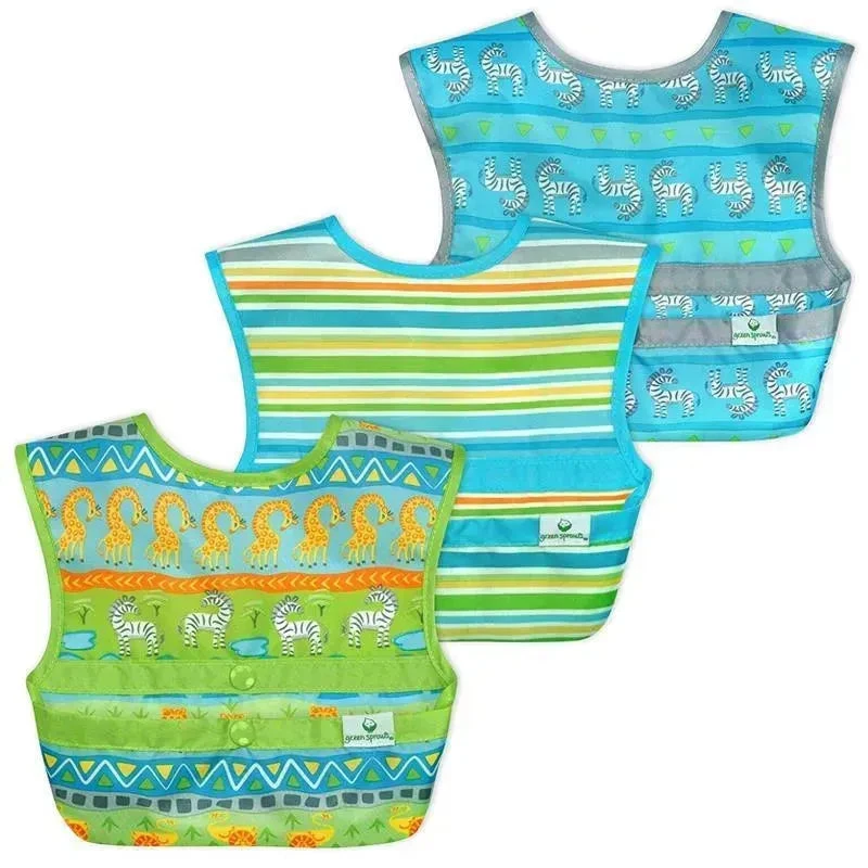 Each bib has a pocket to catch spills and conveniently rolls up when mealtime’s over. It’s made to go on easy and stay put for mess-free eating.