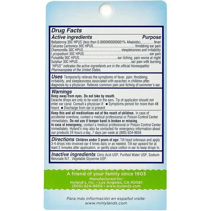 Temporarily relieves the symptoms of fever, pain, irritability, and sleeplessness associated with earaches in children, after diagnosis by a physician. Relieves common pain and itching of swimmer’s ear. If symptoms persist for more than 48 hours, or if there is a discharge from the ear, discontinue use and contact your physician.