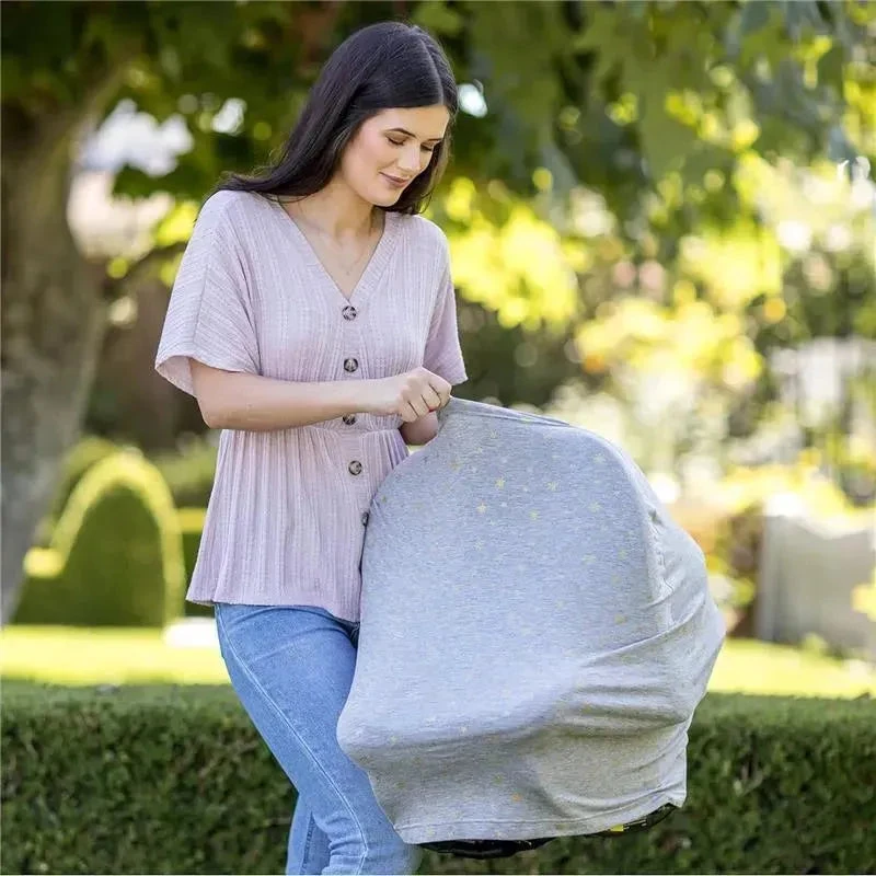 J.L. Childress – 4-in-1 Multi-Use Cover, Stretchy Car Seat Canopy And Privacy Cover, Grey/Gold Stars