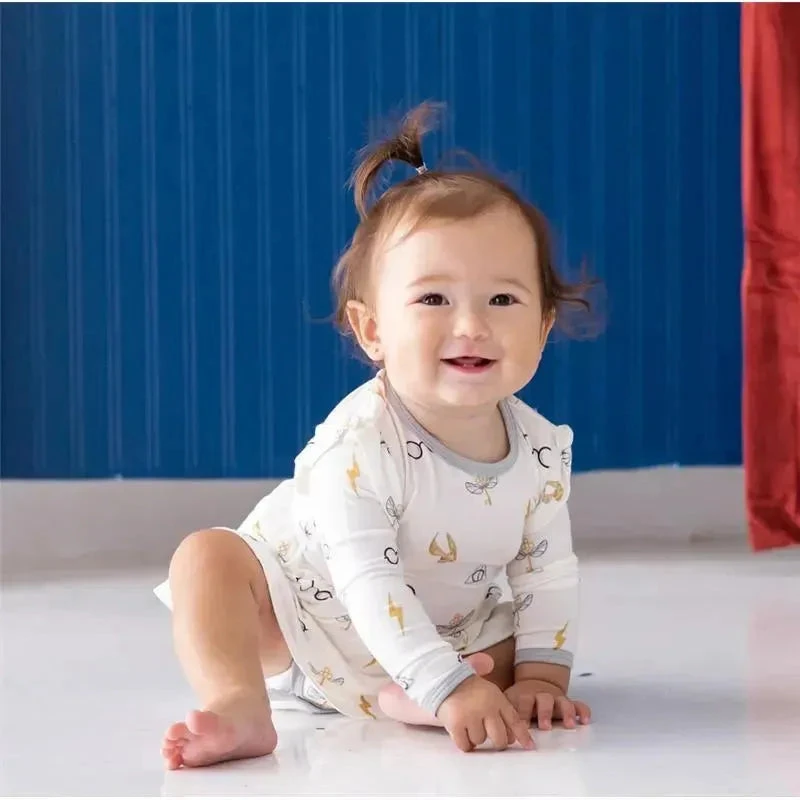 A twirl skirt and ruffled sleeves add the sweetest touch to this classic bodysuit. Adorable, functional, and comfortable, this all-in-one outfit keeps diapers out of sight for a neat and stylish look. Super soft Rayon made from Bamboo stretches to grow with your little one, so you can use this piece time and time again for any occasion.