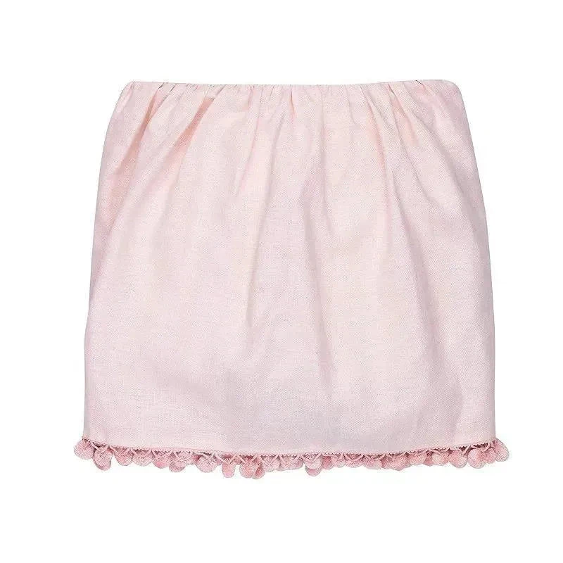 Crib fitted sheet,crib skirt and quilt are made of 100% cotton.