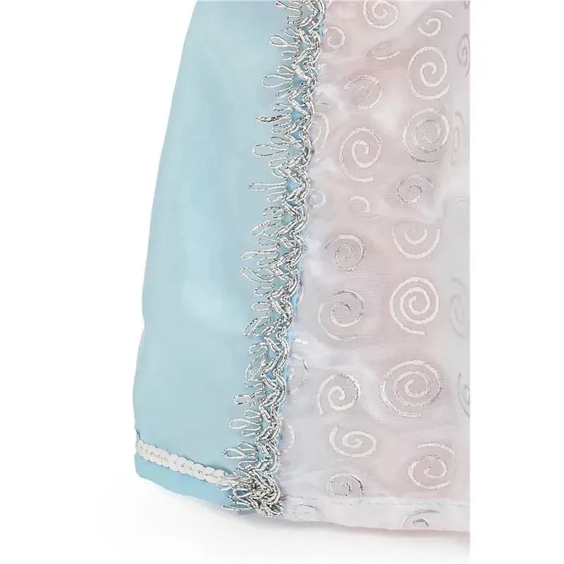 This glamorous dress is made for a night at the ball. This perfect match to our newly re-designed Traditional Cinderella has a blue velvet bodice elegantly detailed with a gathered white inlay, sparkling silver trim and a jeweled flower. The silver trimmed hip drapes capture that authentic Cinderella look. Doll or plush not included. Features: Clothing quality fabrics; machine washable. Stretchy fabrics with velcro closures.