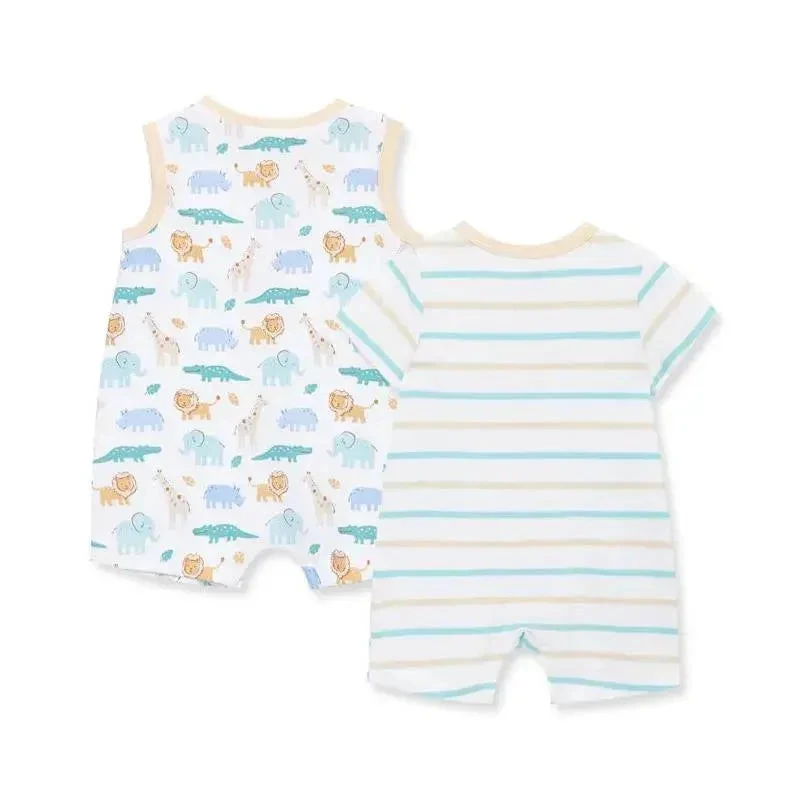Safari around in your newborn baby boys’ knit rompers done in a safari animal theme.