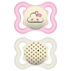 GLOWS IN THE DARK: These night pacifiers for baby glow in the dark, making it easy for you to locate quickly at night without any stumbling and searching, so your baby can sleep better.