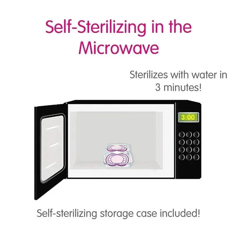 SELF – STERILIZING CASE: Add water and pop into the microwave to sterilize MAM silicone pacifiers 0-6 months in just 3 minutes and store in case for at home and travel to protect the pacifiers.