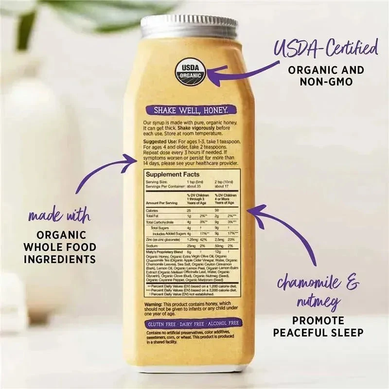 Soothes Nighttime Coughs for a Peaceful Sleep: For ages 1 year and older, Maty’s Organic Children’s Goodnight Cough Syrup uses pure, simple ingredients like organic honey to soothe kids’ coughs at night; Melatonin free, made with chamomile tea and nutmeg to help them sleep peacefully