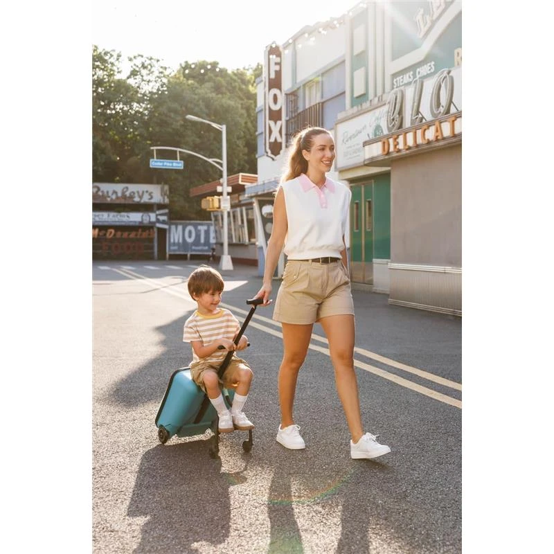 The Micro Allrounder Ride-On Cart is a multi-functional travel and shopping cart that will add convenience, fun and fashion to every trip with young children. Young children love riding the cart through the airport or on neighborhood errands, turning every trip into an adventure. The ride-on feature keeps children entertained and engaged, making the journey more enjoyable for parents and children alike. Detach the case to transform the cart into a lightweight, foldable push-trike that children can ride, offering even more versatility and fun. When traveling by air, the cart is compact enough to stow in most overhead compartments, and is lightweight for easy carrying. The case provides ample space to accommodate travel items, veggies from the market, groceries, and/or your child’s favorite toys. A removable net with zipper allows for compartmentalization of items for easy access, and helps you stay organized on the go. Parents find it easy to maneuver the Travel Cart with only one hand, leaving the other hand free to multitask as needed! The cart is surprisingly maneuverable and turns very easily. It can be pushed with the child in front of you, or pulled with the child behind you. The adjustable telescoping handlebar is a design element that ensures ergonomic comfort for the parent who is steering, and also allows for easy storage when the cart is not in use.