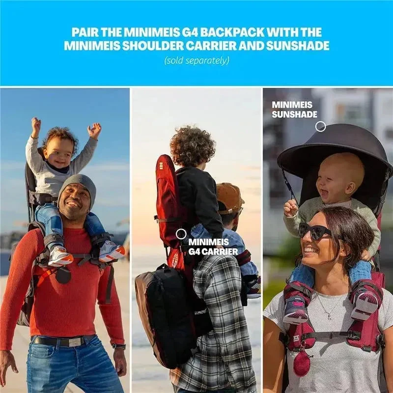 Dual Mode Backpack – The Minimeis Backpack can be used as a standard backpack to store the G4 or everyday use. It can also be attached to the MiniMeis carrier and easily accessed when in use.