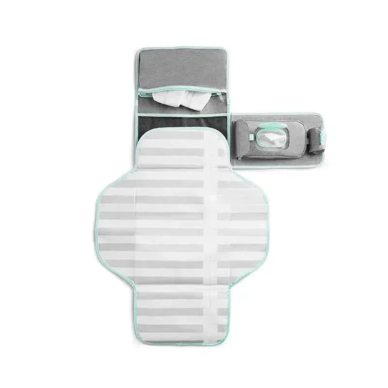 On the go diapering has never been easier or more sanitary. This is a a Antimicrobial Changing Kit from Munchkin. This portable diaper changing station is more than meets the eye, because the fabric is secretly tough on germs! With baby changing essentials like wipes and disposal bags plus an extra-large, water-resistant changing pad that doubles as a growth chart, this trusty kit has everything you need for a quick and hygienic diaper change. Infused with silver-ion antimicrobial technology, the pad’s fabric prevents the growth of germs on its surface, providing an extra layer of protection for your little one. Zip it up and attach to the stroller or keep one handy in the car for emergencies. Mama, we’ve got you and baby covered no matter where you are!