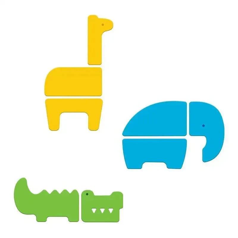 Calling all wild animal lovers! Get ready for a blast in the bath with the Safari Foam Puzzle Set. This creative bath toy features 33 foam animal shapes that double as a freeform puzzle for endless learning and fun in the tub. Go wild mixing and matching shapes to create up to 500 one-of-a-kind animals! Each piece is made of soft, durable foam that floats on water and clings to bathroom walls when wet. With so many possible combinations, your little explorer can go on a new safari adventure each day.Made of soft, durable, nontoxic foam.Encourages creativity and expression – 18 months and up