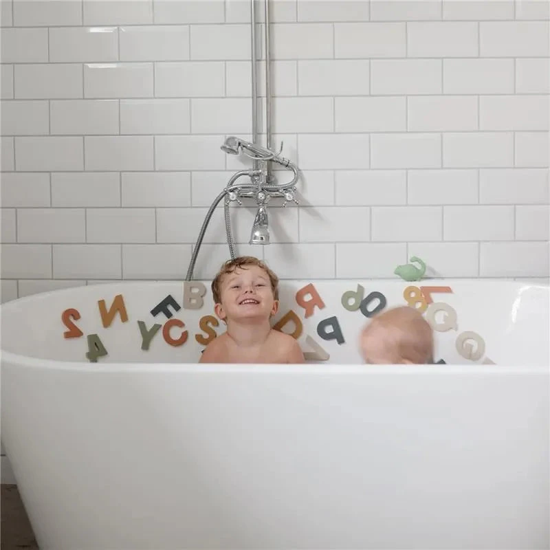 Floating Magic: Watch as our Mushie foam pieces bob gently on the waves of your child’s bath, easily adhering to bath surfaces. It’s a spectacle that provides not just entertainment but also a chance to learn. As the foam pieces float around, your child’s eyes will light up as they recognize numbers and letters, and their phonics skills will gently improve as they grow with every bath-time.