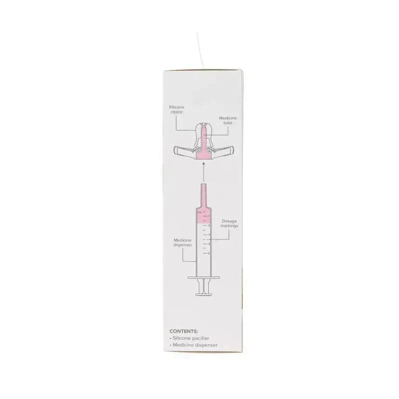 Giving an accurate dose of medicine to your little one has never been easier with Dr. Talbot’s Paci-Med Baby Medicine Dispenser. The Paci-Med medicine dispenser combines the ease of a pacifier with the accuracy of a medicine syringe, so every dose is a no-muss, no-fuss experience for little ones. The syringe holds 5 ml of liquid medicine, while the pacifier attachment, shaped like those from the hospital, bypasses baby’s taste buds for easy, comfortable relief. The syringe uses standard dosage markings ensure maximum effectiveness and wellness for little ones. This newborn essential is easy to clean and dishwasher and steam sterilizer safe. The Paci-Med Dispenser is made from clear, BPA-free plastic to easily see the medication. Help your little one with congestion, colds, and more, with this easy-to-use baby medicine syringe with pacifier attachment.