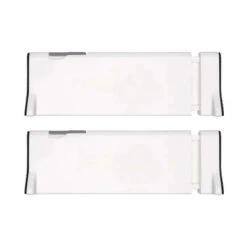 OXO Expandable Dresser Drawer Dividers slide from 11-in to 17-in to fit most drawers front to back or side to side. A unique mechanism allows for tool-free installation. Simply push down on the gray handle to lock the 4-in-tall Divider in place. Also ideal for use in the kitchen, workroom and office. Set of two.