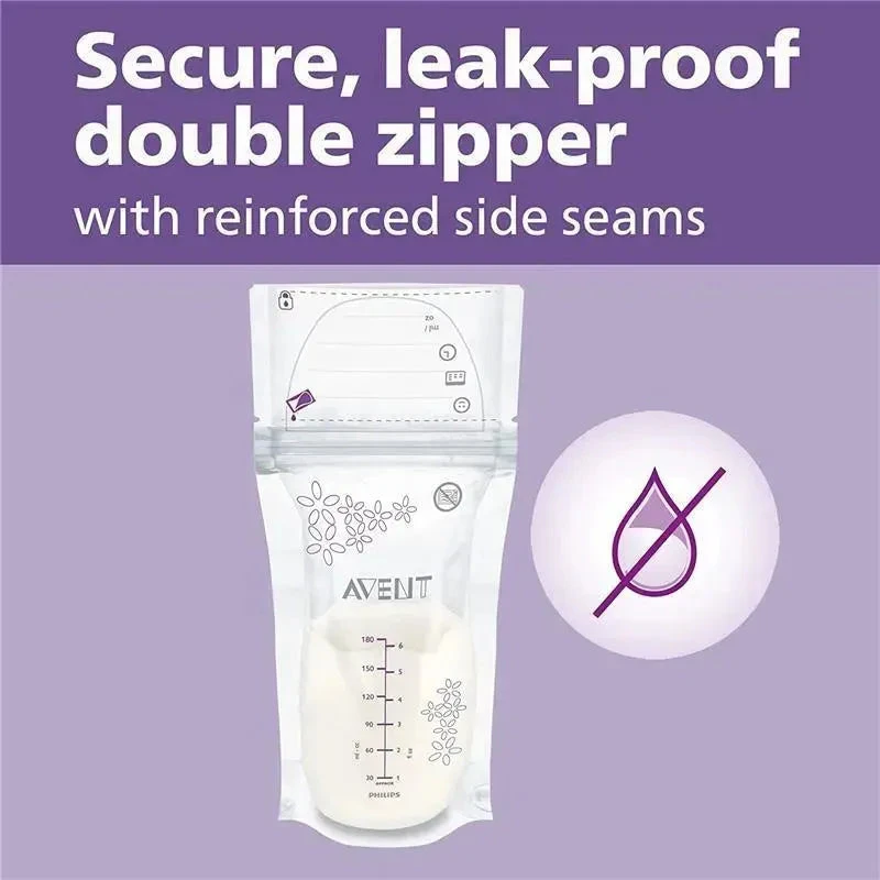 Philips AVENT breast milk storage bags provide safe and secure storage for your precious breast milk. They can be storedin the dridge or freezer and are pre-sterilized for immediate use.