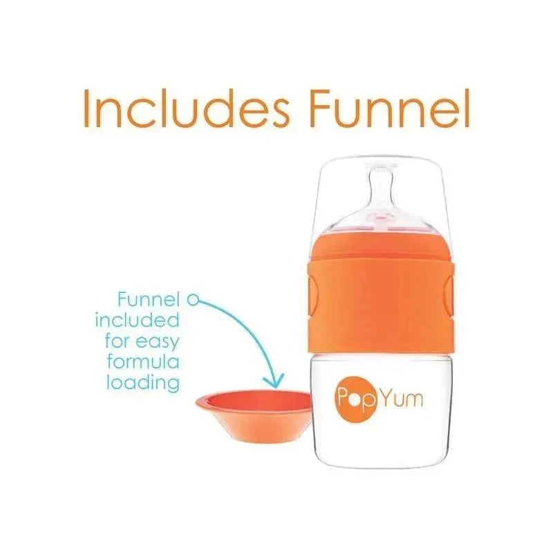 PopYum stores water and formula separately in the bottle until hunger calls. With a single hand, simply pop (press buttons to release formula into water), shake a few times and yum! Prepare enough bottles for the entire day, around town, at daycare, and for travel.