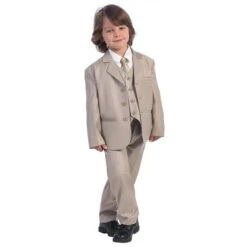 Lito – Boy’s 3 Button 5 Piece Khaki Suit With Shirt, Vest, And Tie