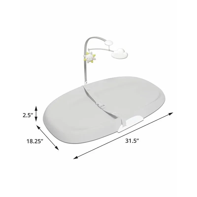 Parenting can be a dirty job, but it doesn’t need to be. Our contoured changing pad easily wipes clean, so you’re always ready for the next diaper change. Comfortable and cushioned with a tuck-away toy bar, it keeps baby happy and frees up time for busy parents.