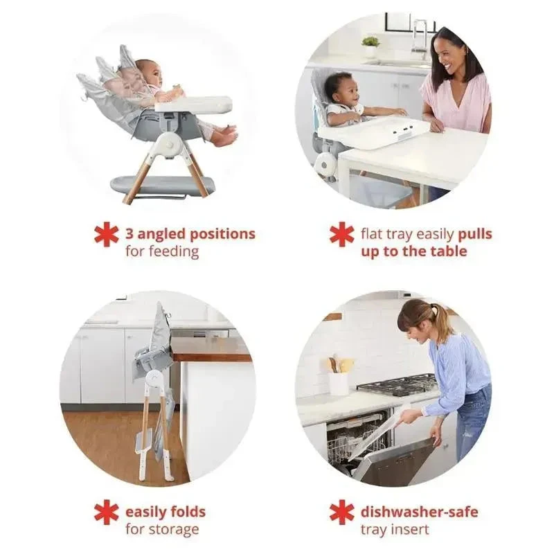 Loaded with functional features to make mealtime easier, our modern highchair can be pulled right up to the table so baby is part of family meals. Even better? Our baby high chair converts to a toddler kitchen helper for grow-with-me versatility. An angled seat makes it a great option for an infant high chair, too. Wipe-clean materials, beechwood accents and more make this foldable high chair a space-saving solution with decor-friendly style.