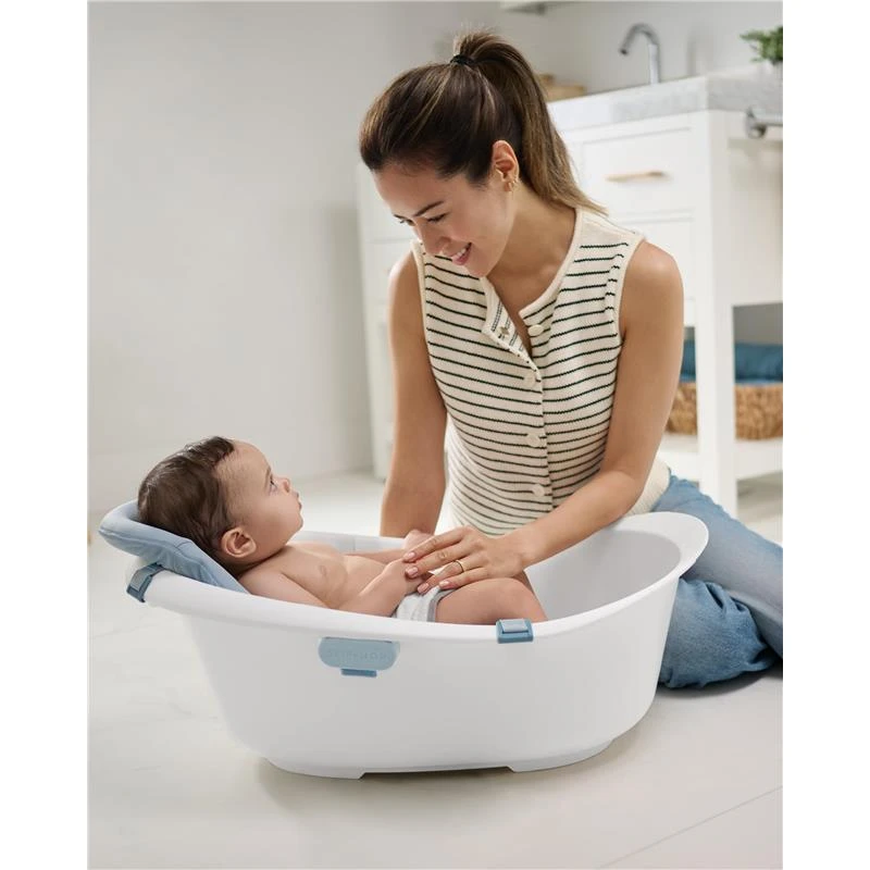 Our cheerful whale shaped Moby grey tub grows with baby through three stages and offers Smart Sling support.