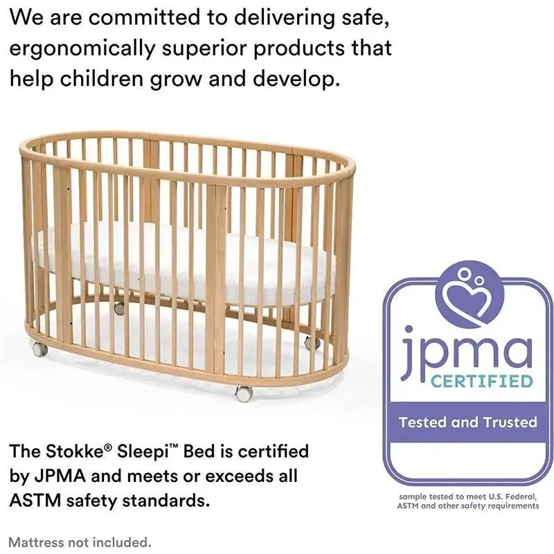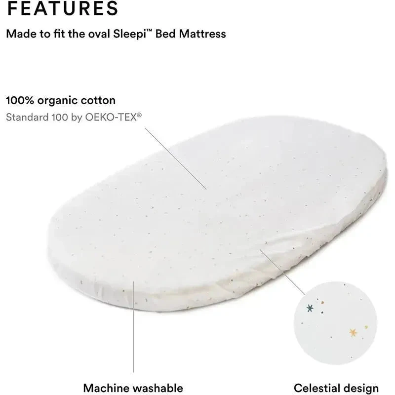 SLEEPI COLLECTION – The fitted crib and bed sheet with elastic all the way around is made to fit the oval Sleepi bed mattress. Part of the Stokke Sleepi bedding collection, it’s compatible with the Stokke Sleepi Mini and Crib/Bed.
