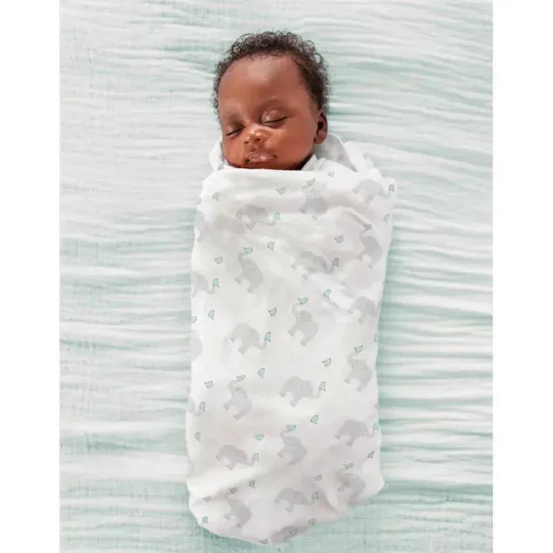 Swaddle Designs – Ultimate Swaddle Blanket, Elephant & Chickies, Seacrystal