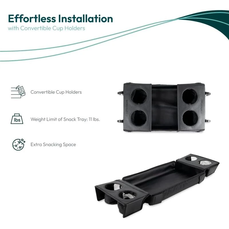 Picture this: Your little one suddenly decides they need more space for their array of snacks. With our ingeniously designed convertible cup holders, you can easily flip them out to create more room for their snack spread. It’s not just a snack tray, it’s a veritable feast at their fingertips!